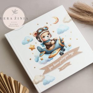 Krikštynų palinkėjimų knyga „Meškutis lėktuve“