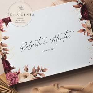 Populiariausias klientų pasirinkimas – individualiai personalizuotos vestuvių palinkėjimų knygos, kuriuose išsaugosite gražiausius svečių palinkėjimus, patarimus ir nuotraukas.