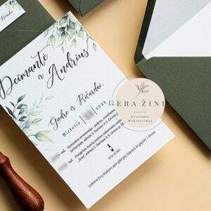 Šie kvietimai puikiai tinka klasikiniam, moderniam ar gamtos įkvėptam vestuvių stiliui.
