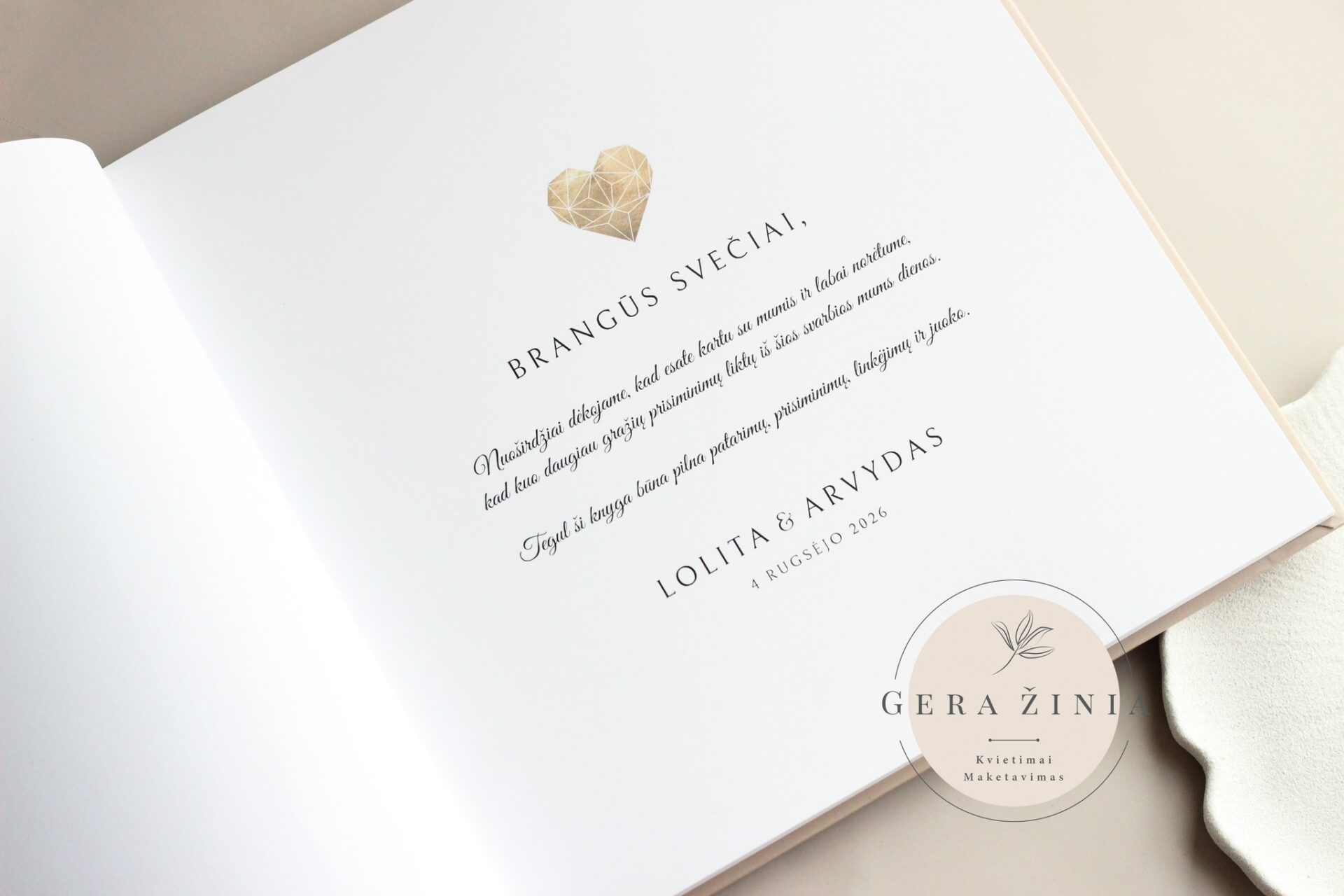 ✨ Aukščiausia kokybė – mūsų palinkėjimų knygos yra gaminamos iš kokybiškų medžiagų, todėl jos ne tik atrodo prabangiai, bet ir ilgai tarnaus, tapdamos Jūsų vestuvių šventės amžinu prisiminimu.